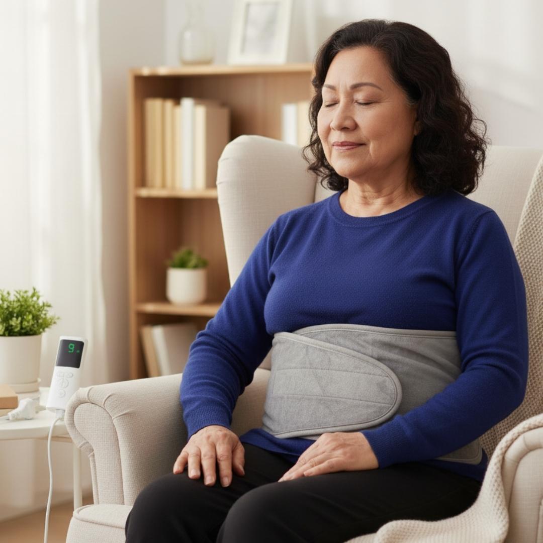 Siéntate cómodo y deja que el calor terapéutico haga su trabajo.